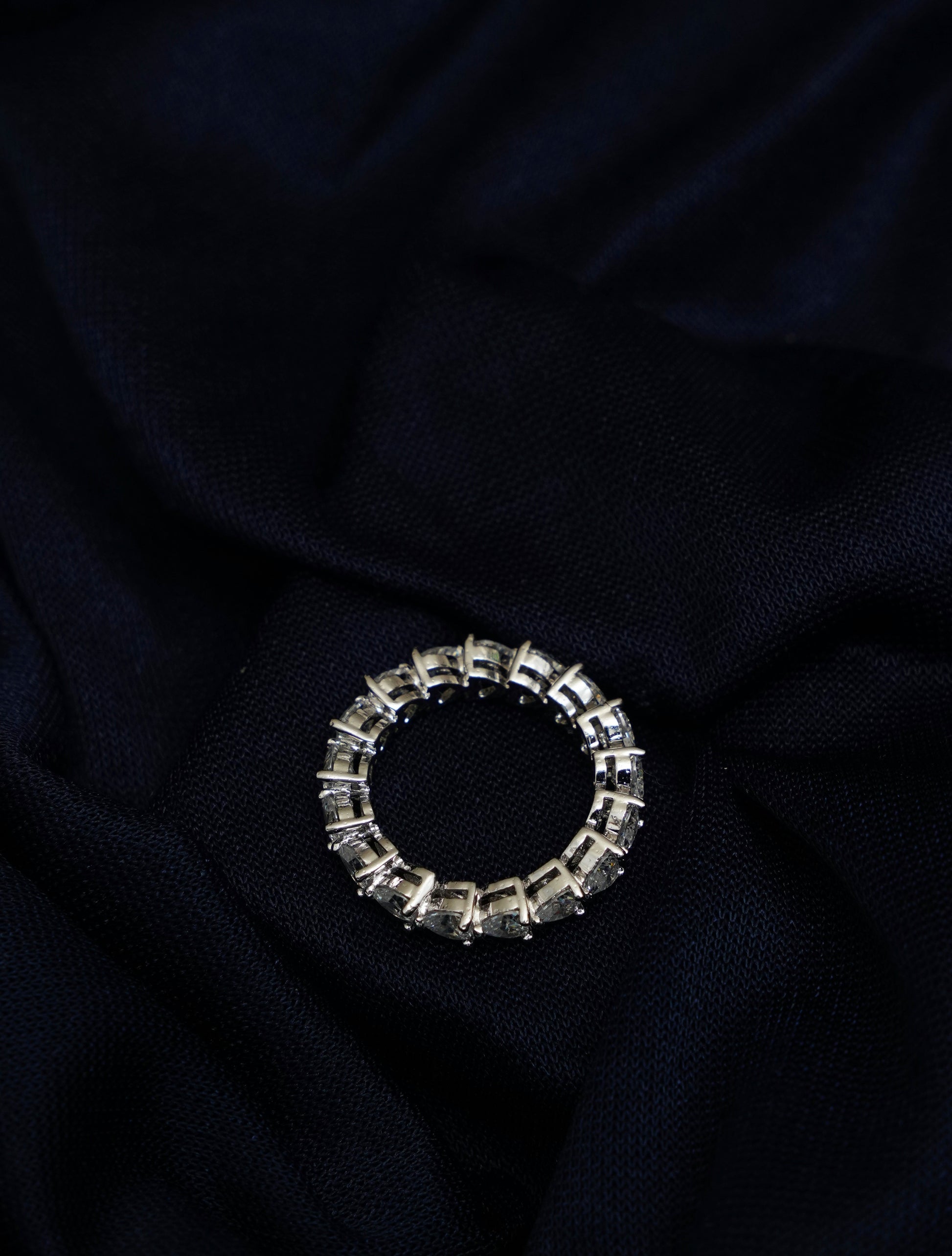 Thoughtfully designed by Kesari Rajat in hallmarked 92.5 silver, this polished pure 925 silver ring captures brilliance from every angle. Featuring a seamless circle of shimmering stones, it symbolizes eternal love and radiance. A perfect choice for festive occasions, bridal adornment, or a timeless gifting gesture.