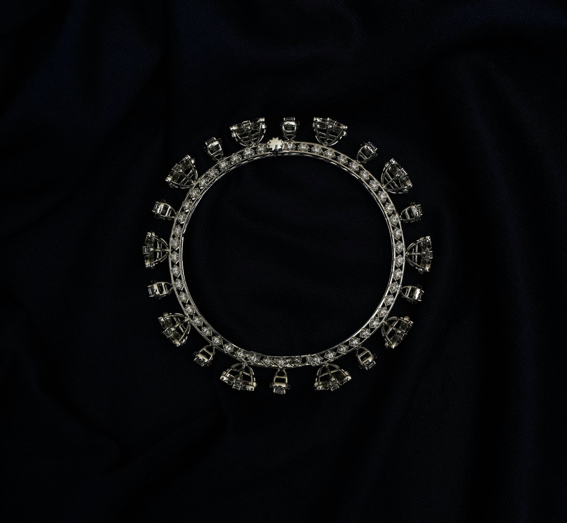 Thoughtfully designed by Kesari Rajat in hallmarked 92.5 silver, this pure 925 silver kada is a true statement piece. With a polished finish and crown-like sparkling stone pattern, it beautifully blends elegance with style. Perfect for festive wear, parties, casual outings, and gifting.