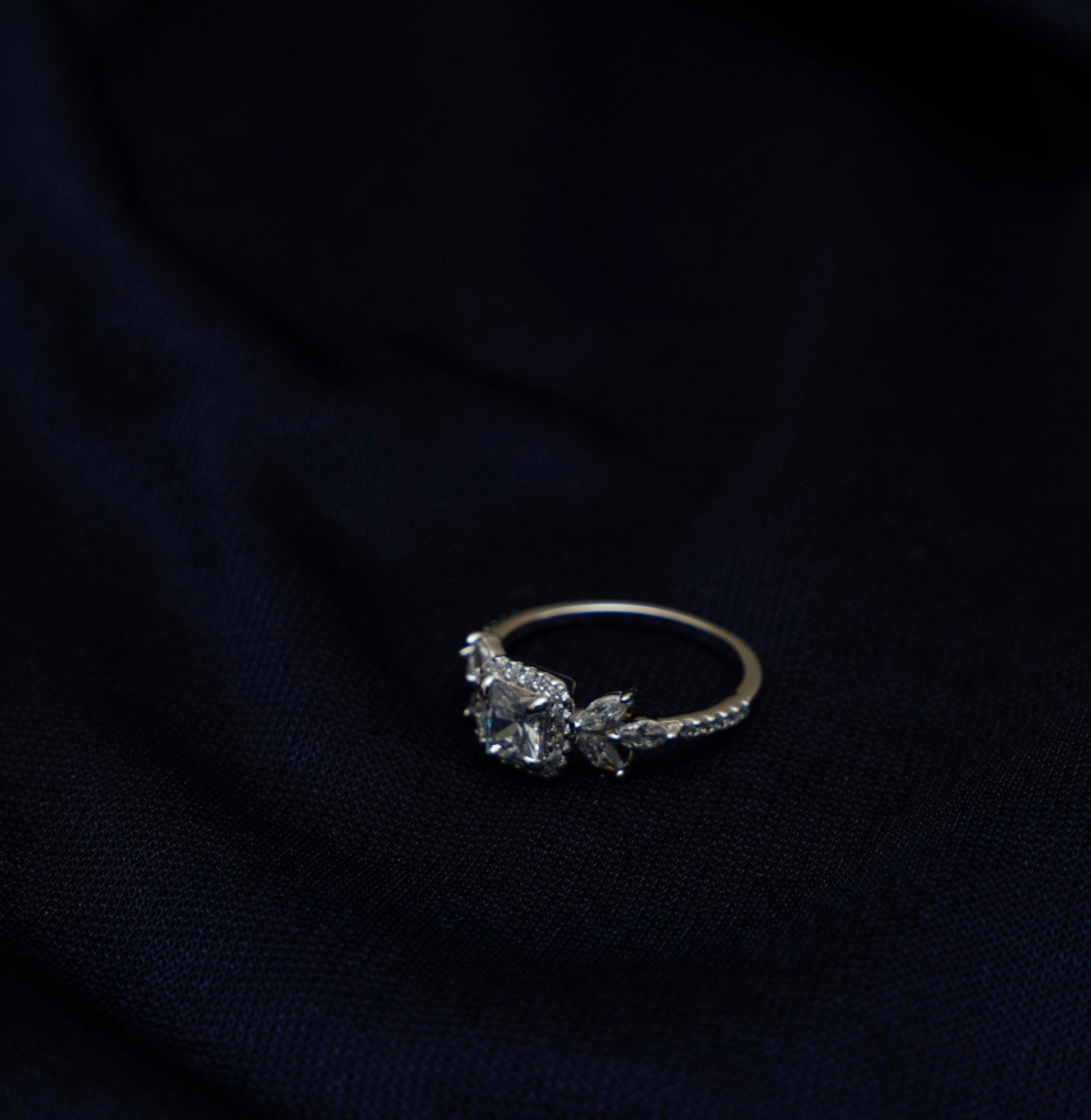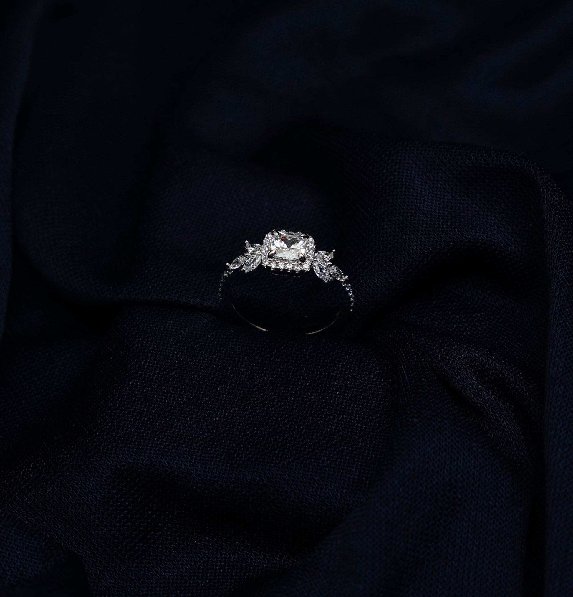 Polished to perfection in 92.5 silver by Kesari Rajat, this exquisite ring features a radiant center stone framed with delicate accents and pear-cut embellishments along the band. Its elegant sparkle and refined artistry make it an ideal choice for festive occasions, parties, casual elegance, and gifting with charm.