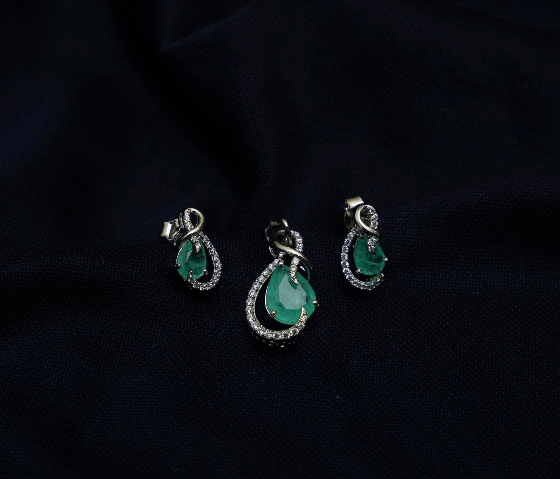 Emerald Glow Drop Pendant Set