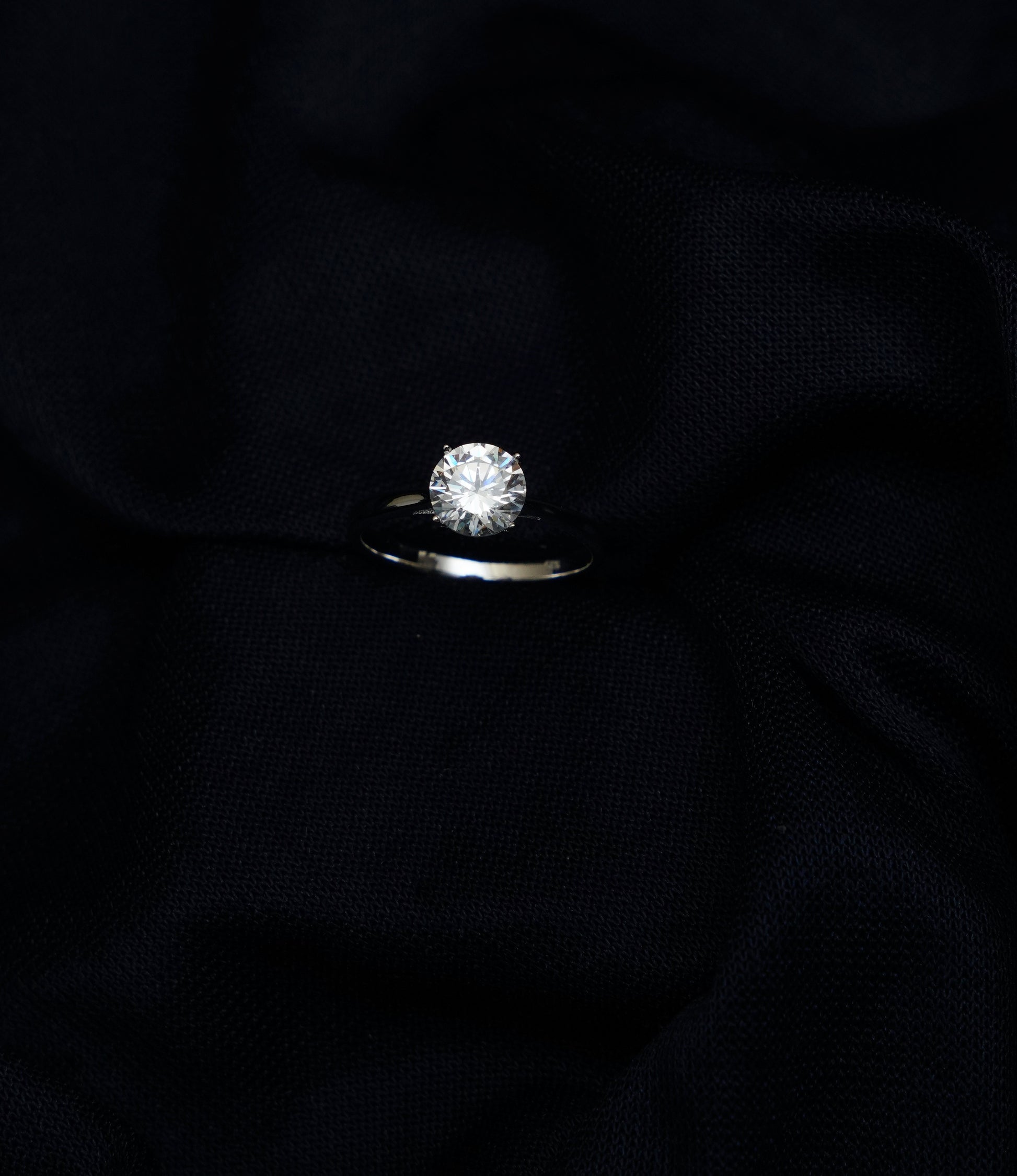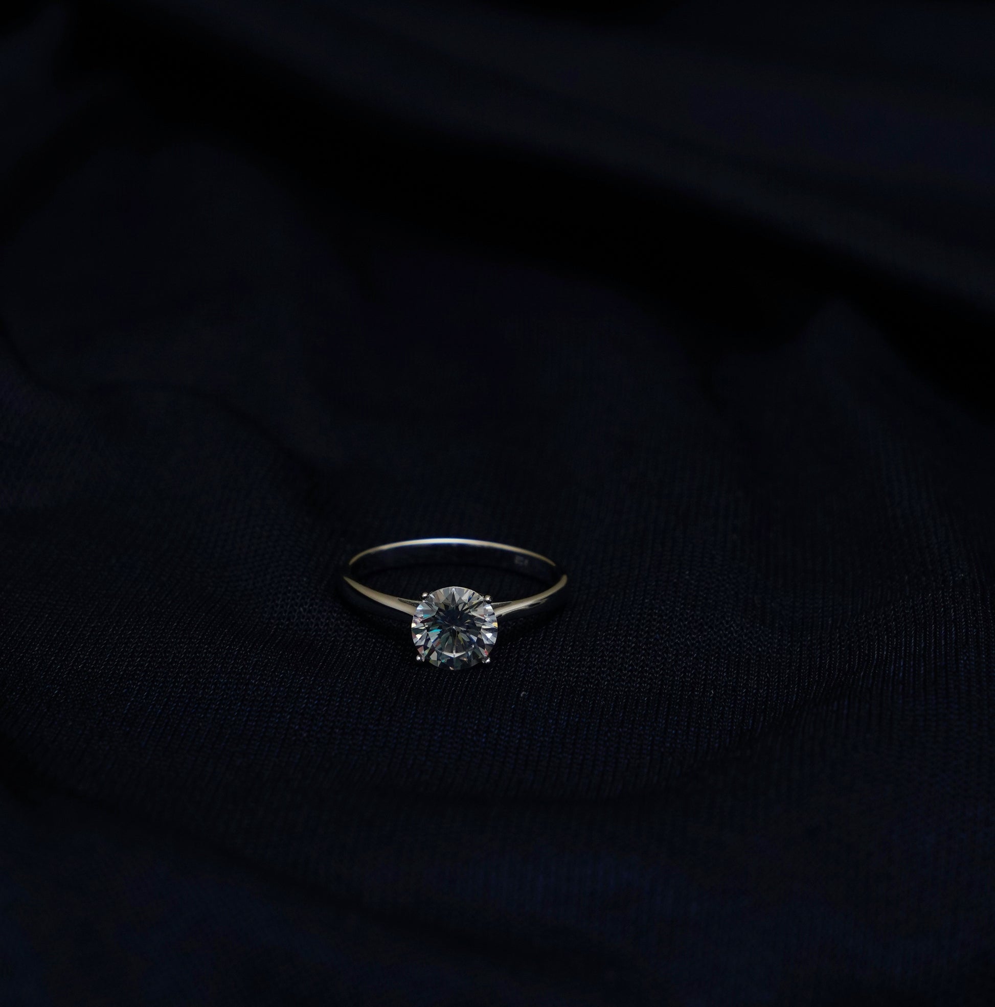 Designed in polished 92.5 silver by Kesari Rajat, this solitaire ring features a brilliant round-cut stone elevated on a sleek, minimal band. Its timeless elegance and radiant charm make it perfect for festive gatherings, parties, casual wear, and gifting with sophistication.