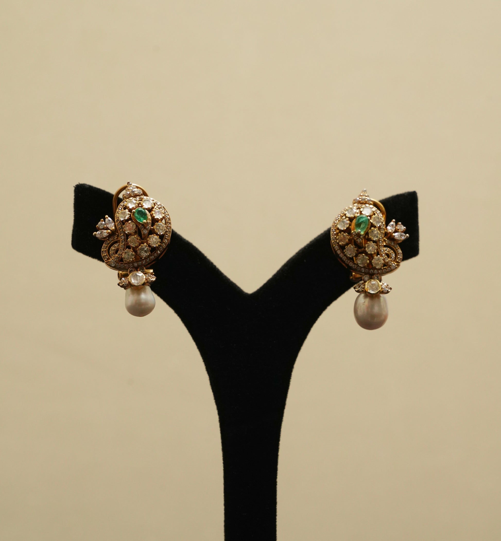 Crafted by Kesari Rajat in hallmarked 92.5 silver, this polished necklace set features a lustrous string of pearls adorned with an intricately designed floral pendant, finished with sparkling CZs and emerald accents. Paired with complementing earrings, the design blends vintage charm with timeless elegance. Ideal for bridal ensembles, festive occasions, or cherished gifting, this set radiates sophistication and grace with every detail.