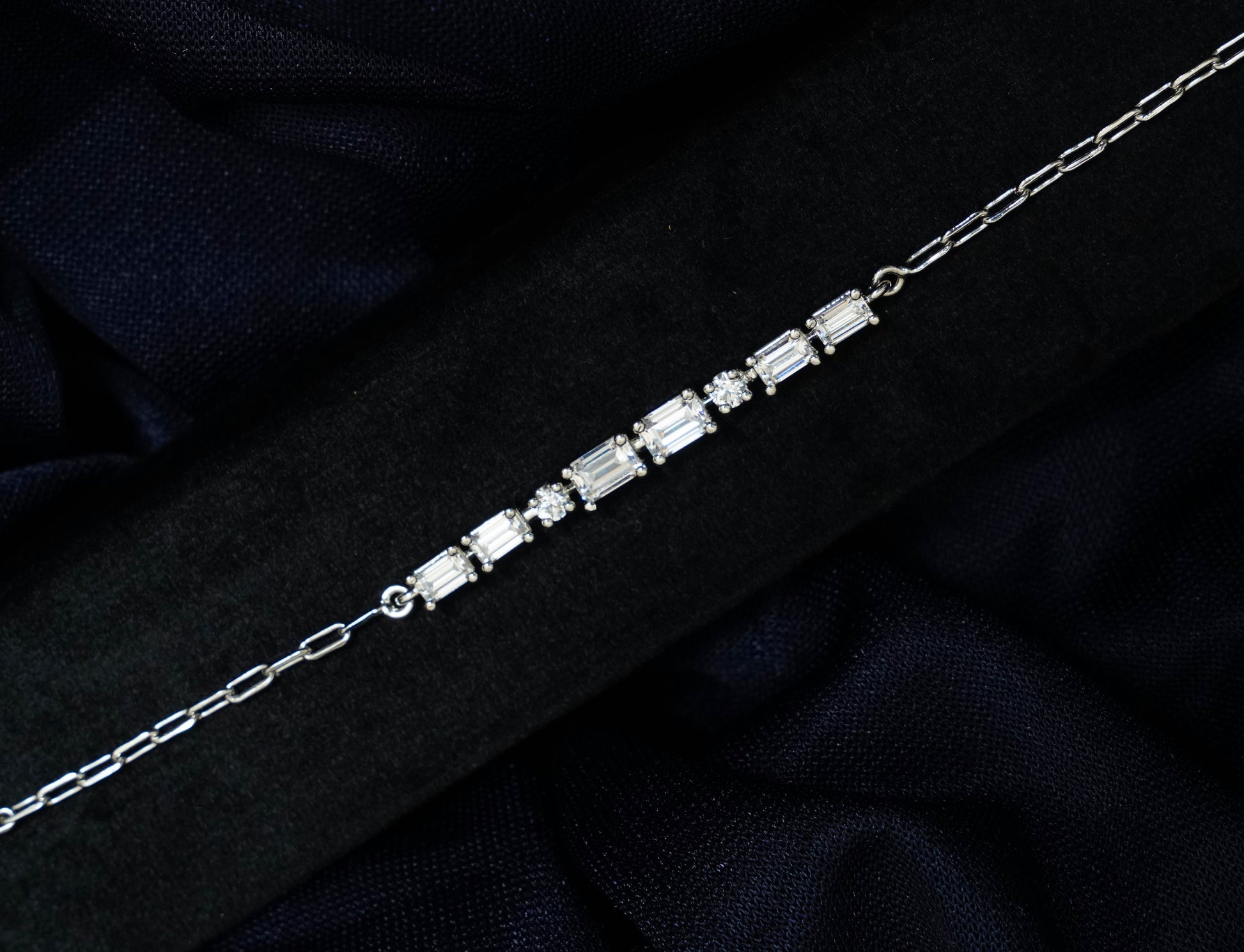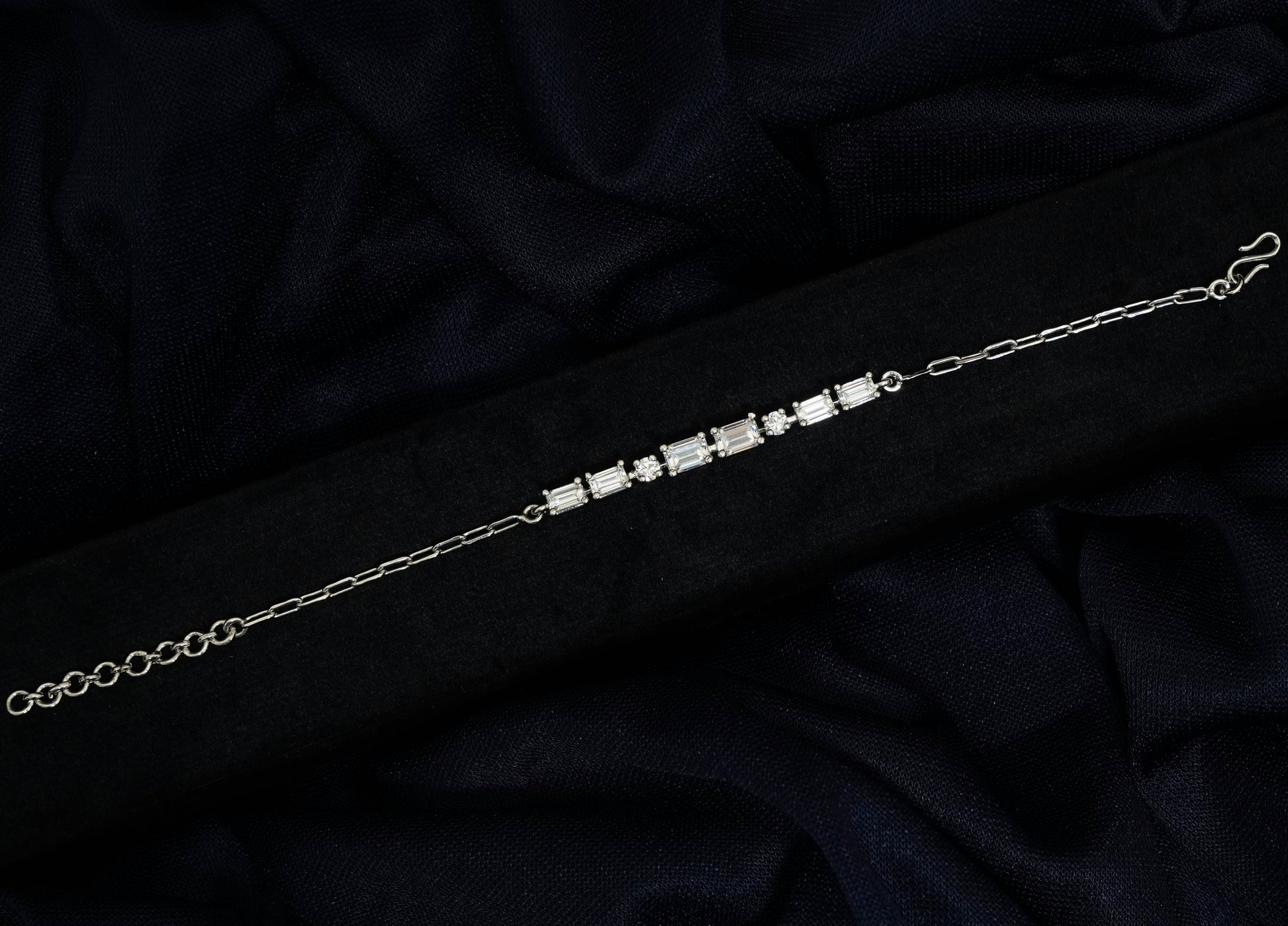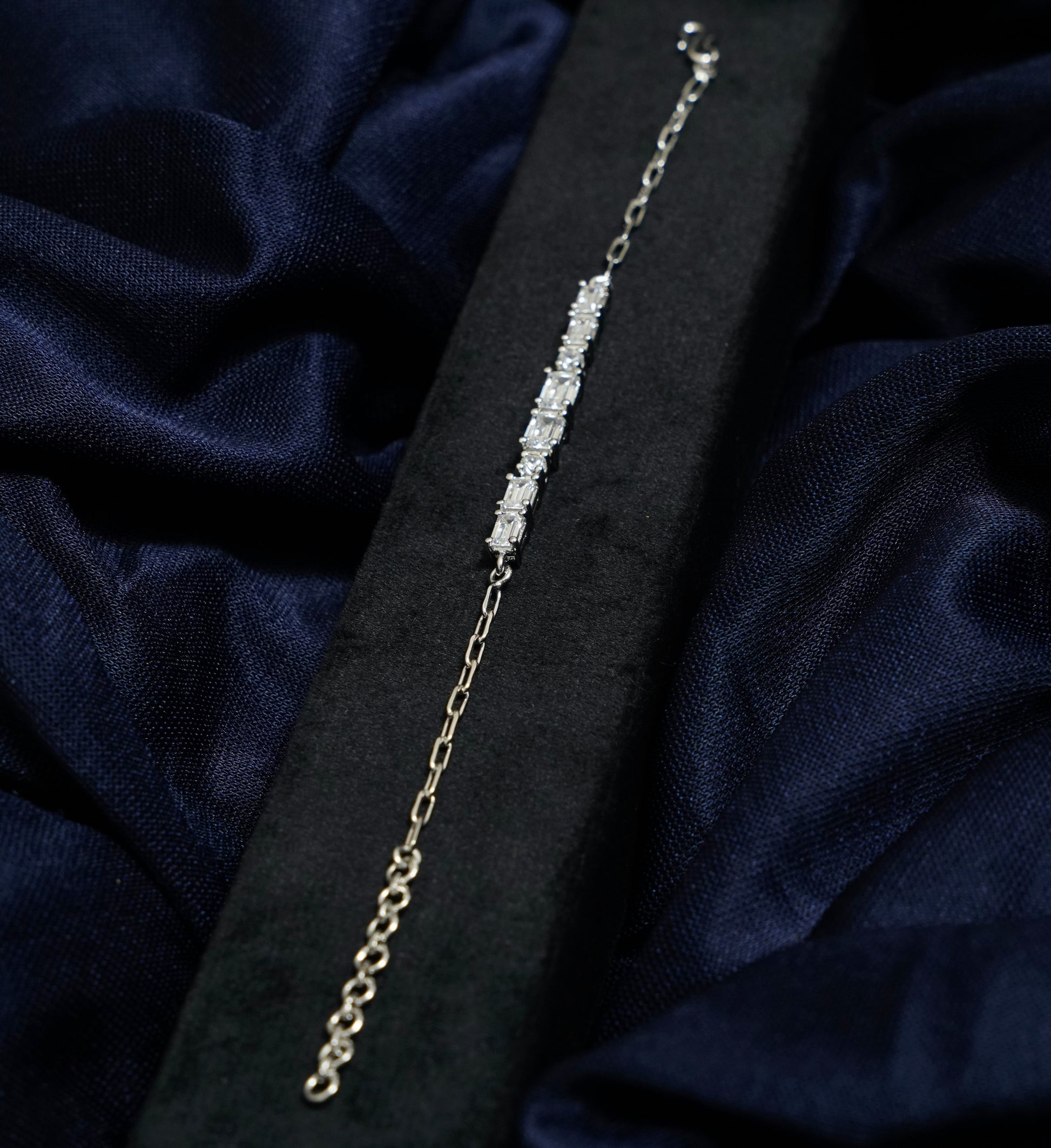 Thoughtfully designed by Kesari Rajat in hallmarked 92.5 silver with a polished finish, this tennis bracelet is adorned with sleek, precisely set stones that exude radiant brilliance. A versatile statement of grace, it transitions effortlessly from festive soirées and lively parties to everyday elegance and meaningful gifting.