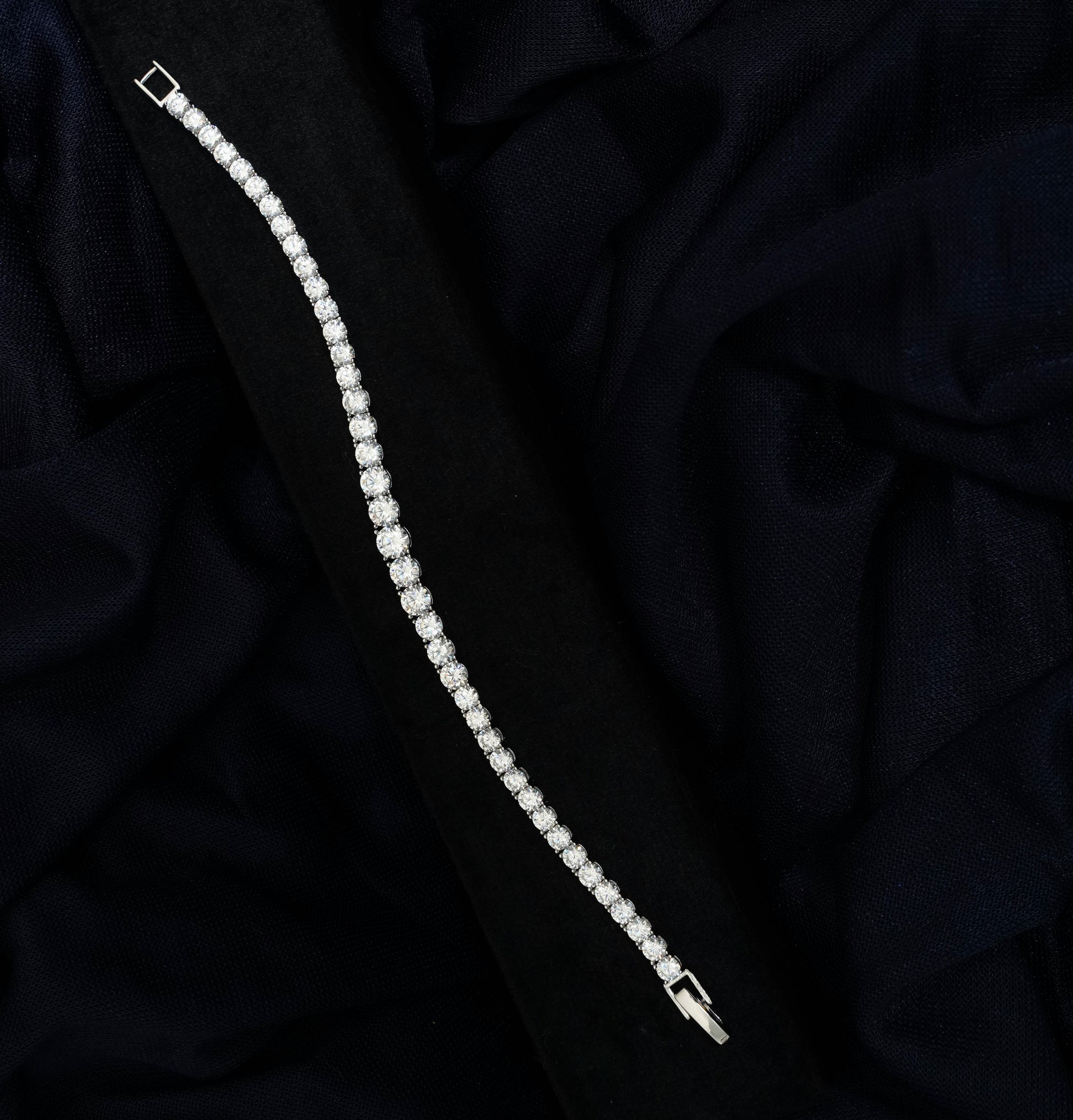 Thoughtfully designed by Kesari Rajat in hallmarked 92.5 silver, this polished tennis bracelet reflects timeless elegance. Its refined form makes it perfect for festive occasions, stylish parties, casual wear, or meaningful gifting—adding a graceful touch to every look.