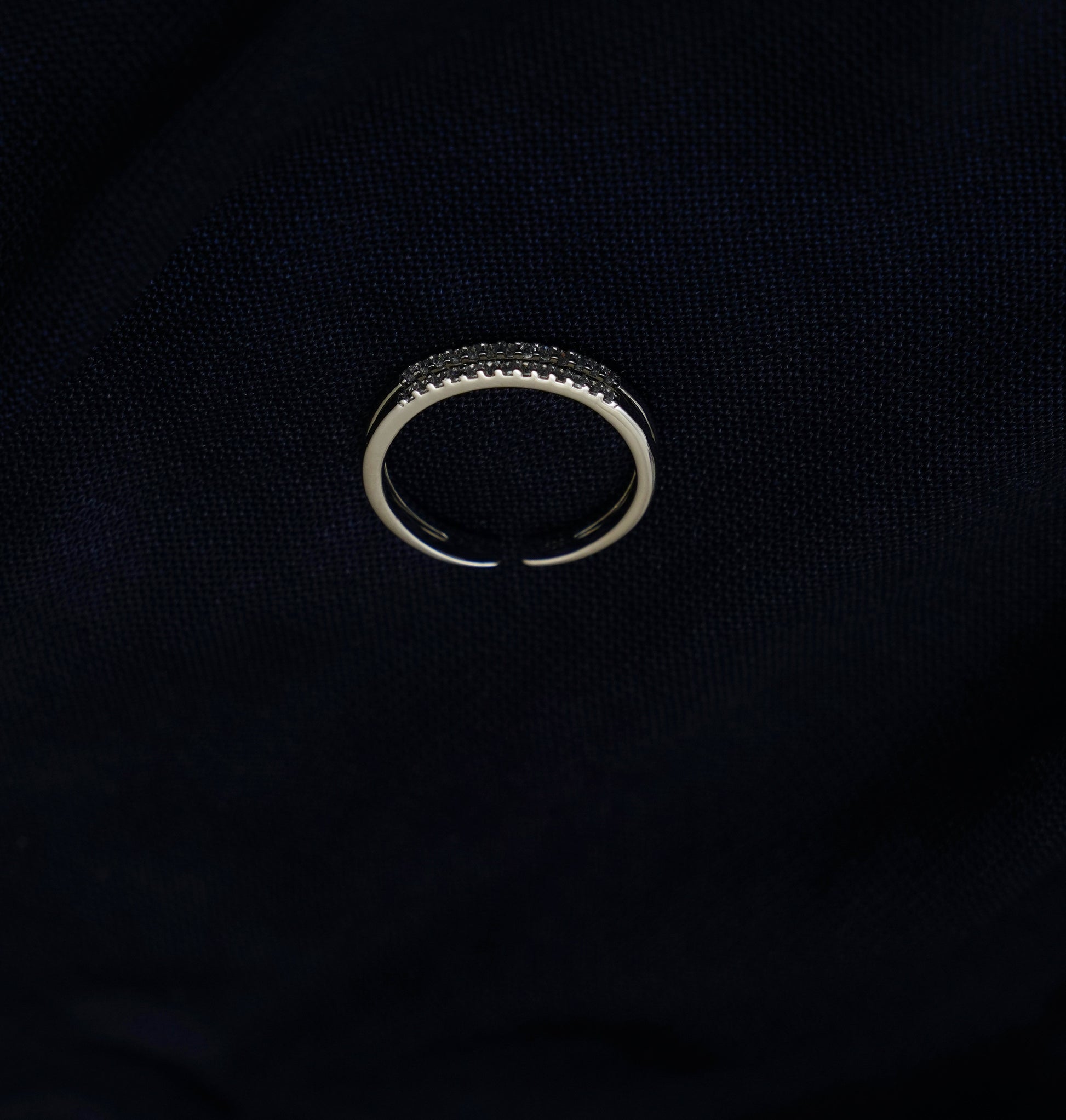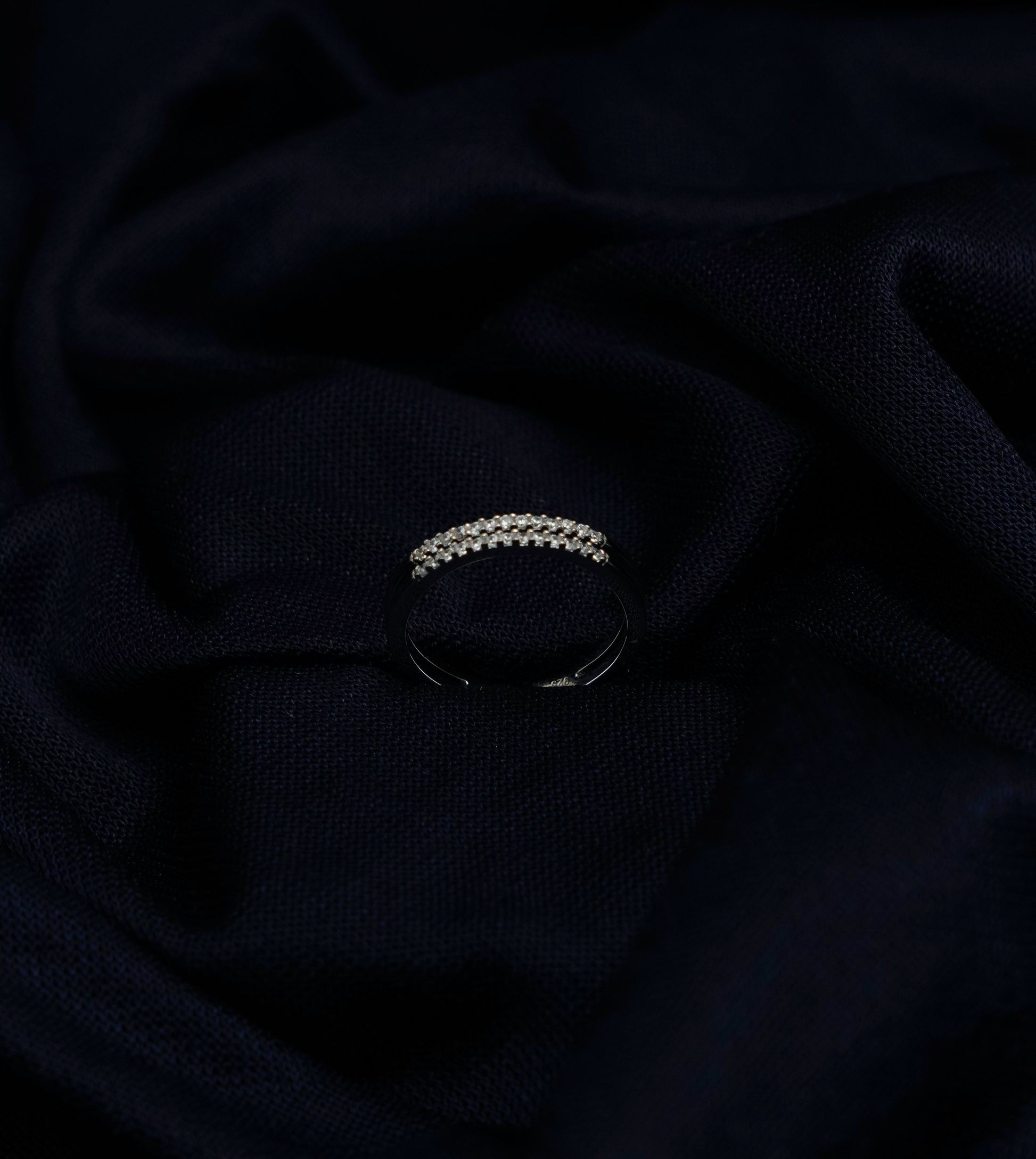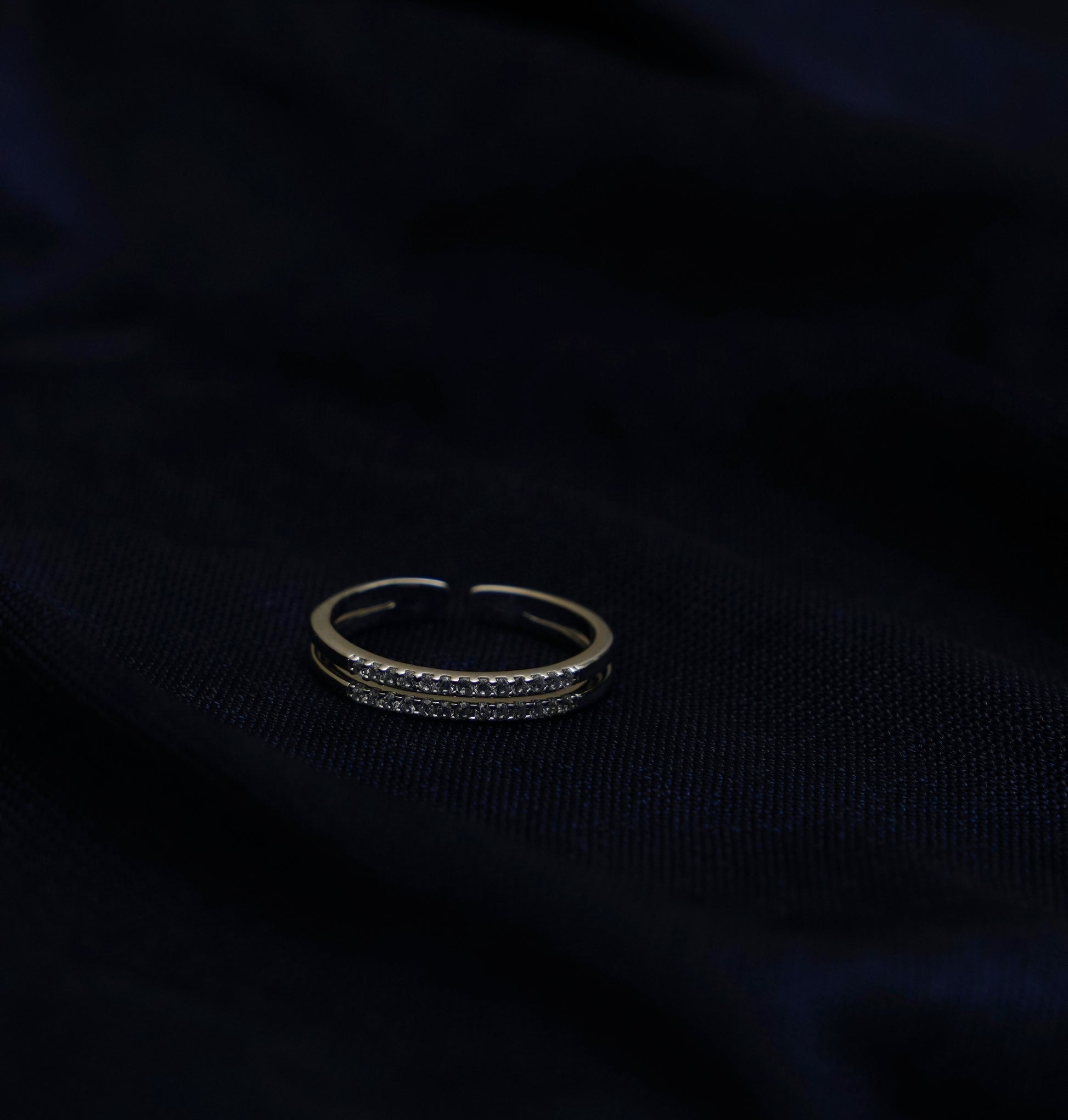 Thoughtfully designed by Kesari Rajat in hallmarked 92.5 silver, this pure 925 silver ring features a polished finish with twin sparkling rows of stones that create a refined yet modern look. Its adjustable design ensures a comfortable fit, making it perfect for festive occasions, parties, casual wear, or gifting.