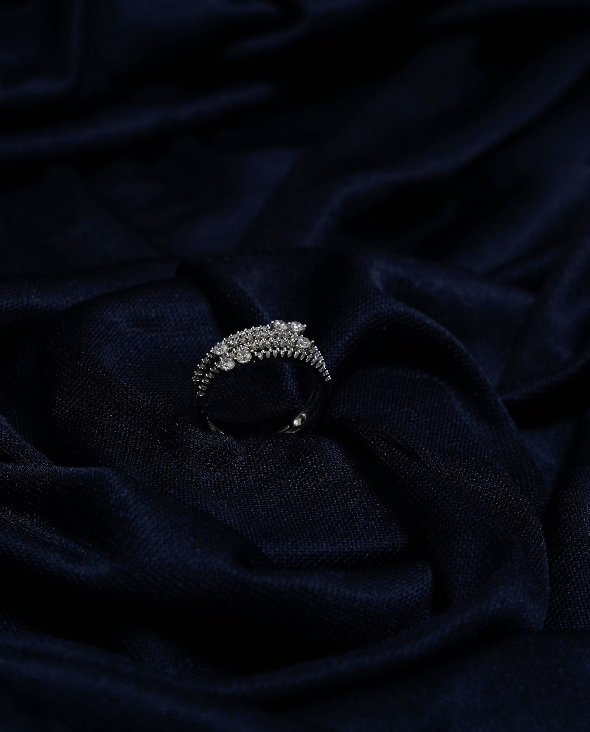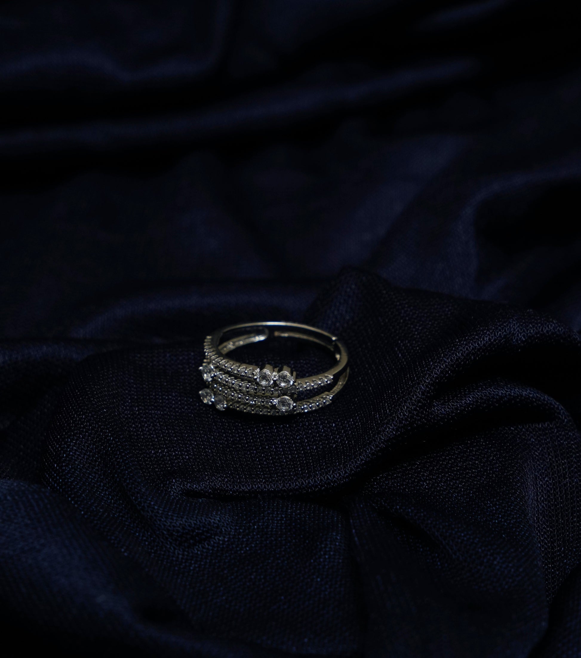 Thoughtfully designed by Kesari Rajat in hallmarked 92.5 silver, this pure 925 silver ring embodies sophistication in every detail. The polished finish enhances the brilliance of its carefully set stones, creating a graceful crown-like silhouette that radiates timeless beauty. Perfect for festive occasions, bridal elegance, or thoughtful gifting, it is a jewel that reflects both grandeur and refinement.