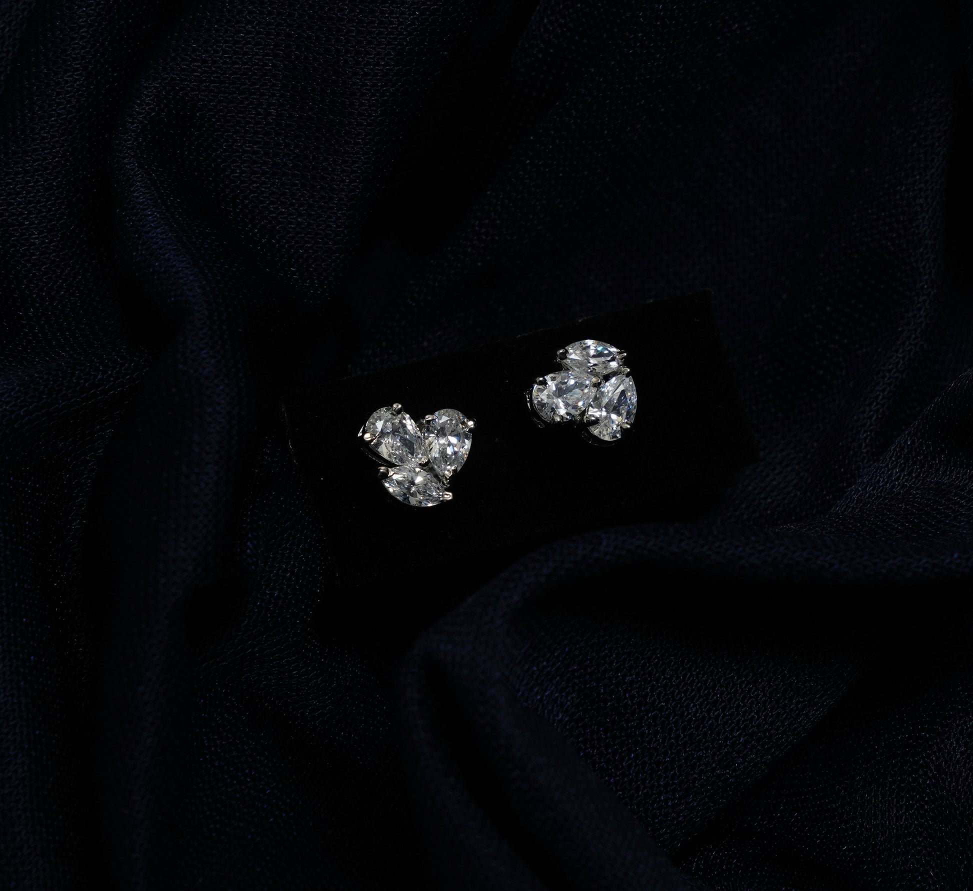 Thoughtfully designed by Kesari Rajat in hallmarked 92.5 silver, these pure 925 silver earrings are a vision of modern elegance. With three dazzling pear-cut stones forming a radiant cluster, they shimmer with every movement. Finished to perfection with a polished shine, they make a timeless choice for festive celebrations, bridal elegance, parties, or gifting